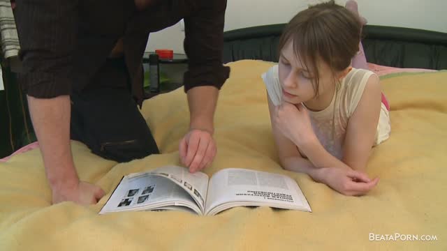 Frisky brunette cutie wakes up mature man with blowjob